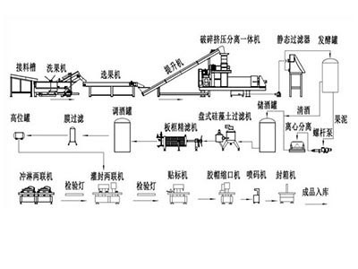 400-0373-987果酒設備生產線展示了各種水果的清洗、破碎、榨汁以及釀造工藝的全過程,為果酒生產商提供了得力的設備,提高了生產效率。下面將為大家展示具體的流程圖。
