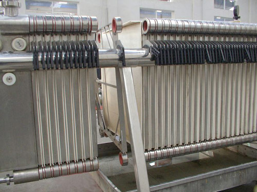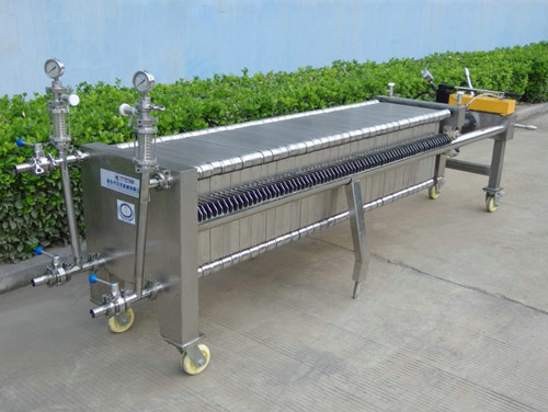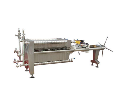板框式硅藻土過濾機(板框過濾機、硅藻土紙板過濾機)屬于硅藻土過濾機系列中的澄清性紙板過濾機,是我公司傳統產品,由最早的棉餅過濾機,發展到引進德國SEN公司(現KHS公司)和瑞士FILTROX公司先進過濾技術和制造工藝而研制生產。其結構由機架、管路系統、過濾板組、壓緊裝置(有變速手輪、手動液壓、全自動液壓裝置供用戶選擇)、電器、廢土排放裝置(可選)、硅藻土添加系統組成,其利用硅藻土和紙板配合使用作為過濾介質,可對果酒、保健酒、葡萄酒、黃酒、口服液、生物發酵液、飲料、糖漿、醬油醋、食品添加以及醫藥和化工等行業液態制品的澄清性過濾。通過該機的分離能使直徑為1~3um的菌體及固體微粒100%截留,而更好地保留原液的特性,其濁度值可達0.5EBC以下,并具有結構簡單,性能穩定可靠,操作方便等特點。