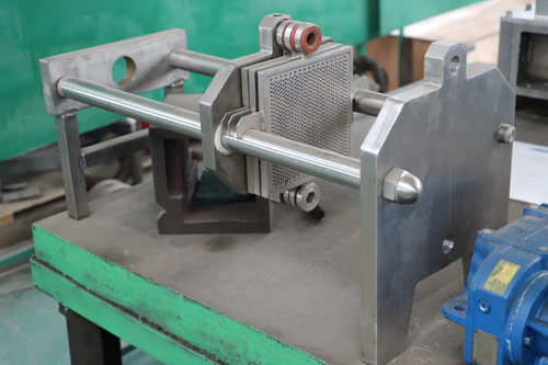 本機是由若干個過濾機單元組成,而每個過濾單元是由濾板、濾框、紙板構成,紙板夾于板框之間作為吸附過濾介質——硅藻土的支承板。過濾前先涂好預涂層,即先將含有一定數量的硅藻土混合液用泵以一定壓力輸入機內的各過濾單元,并進行流動循環以產生壓差,使硅藻土較均勻地吸附于紙板表面,形成了過濾層、預涂層,過濾時被濾液經泵的壓力輸入機內,分別流入各過濾單元,通過硅藻土過濾層及紙板截留了被濾液中的殘余物,而濾后的清液再由各個過濾單元集于一起,從清液管流出機外,從而達到了凈化目的。