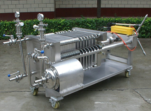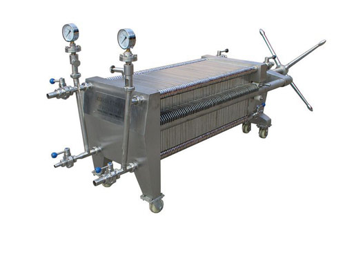 板框式紙板精濾機(板框過濾機、紙板過濾機)屬于精濾機系列中的紙板式精細過濾機,是硅藻土過濾機后的精細過濾,其結構由機架、管路系統、精濾機板組、壓緊裝置(有變速手輪、手動液壓、全自動液壓裝置供用戶選擇)組成,該產品配上所需紙板后,可對經粗濾后,濁度值達到規定要求的液體進行進一步的凈化。根據紙板的性能可實現精細過濾和無菌過濾,特別是配上除菌紙板后能將0.2~0.5μm的菌體及固體微粒100%截留,從而可取代巴氏殺菌舊工藝,更好的保留原液的特性。