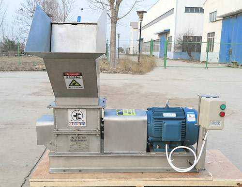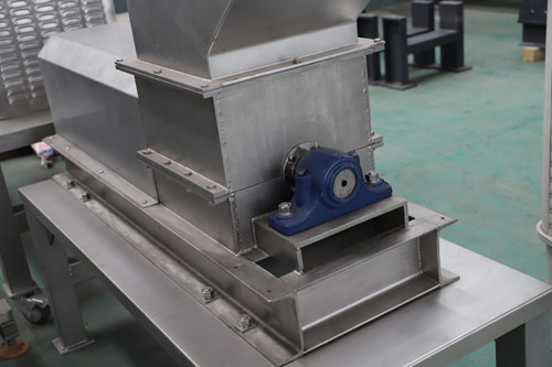 該擺錘破碎機由進料斗、轉子、篩網、機架、電器等部分組成。果蔬物料進入破碎腔,在高速旋轉的轉子與篩網共同作用下,破碎后的物料被強行推過篩網并下落到壓榨機的進料斗或輸送到指定地方。
